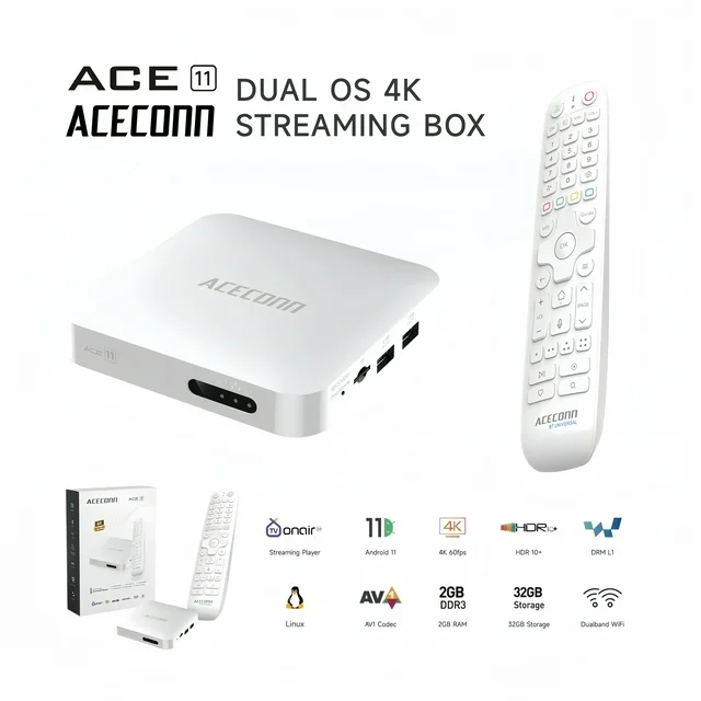2025 TVPLUS 4K Dual OS(Andriod 11 or Linux ) TV Box ACE11 TVONAIR3 2GB 32GB BT Remote + LIXSUNTEK Ethnet Cable